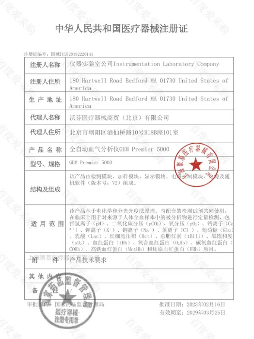 该产品基于电化学和分光光度法原理,与配套的检测试剂共同使用,在临床上用于对来源于人体全血样本中的被分析物进行定量检测,包括氢离子(pH)、二氧化碳分压(pCO₂)、氧分压(pO₂)、钙离子(Ca²⁺)、钾离子(K⁺)、钠离子(Na⁺)、氯离子(Cl⁻)、葡萄糖(Glu)、乳酸(Lac)、红细胞压积(Hct)、总胆红素(tBili)、氧饱和度(sO₂)、血红蛋白(tHb)、氧合血红蛋白(O₂Hb)、碳氧血红蛋白(COHb)、高铁血红蛋白(MetHb)和还原血红蛋白(HHb)项目。
