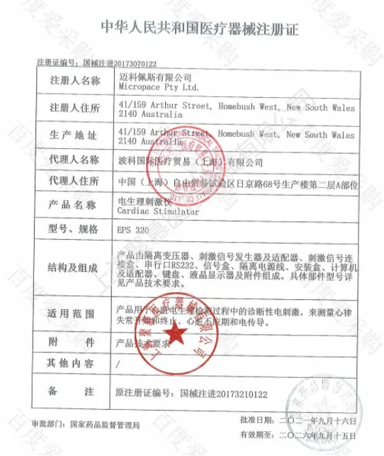 产品用于心脏电生理检测过程中的诊断性电刺激,来测量心律失常开始和终止、心脏不应期和电传导。