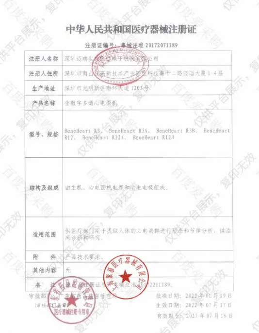 中华人民共和国医疗器械注册证