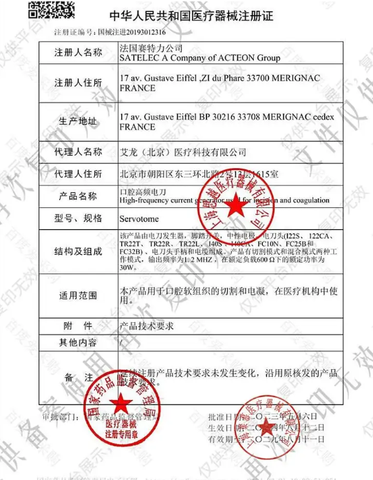 中华人民共和国医疗器械注册证